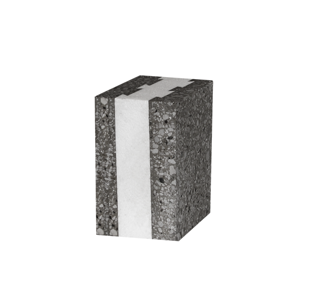 - İç kısmı 6,0 cm polistiren köpük (strafor) malzemesinden, dış yüzeylerinin her biri 4,0 cm kalınlığında, pomza taşı ile çimento karışımından oluşur.
